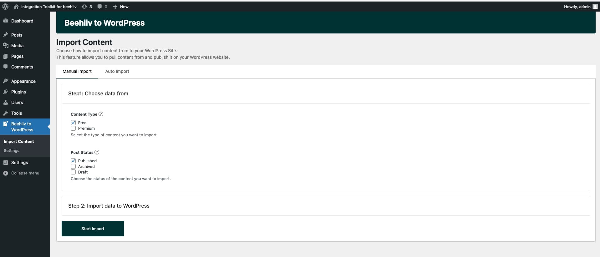 Easy importing of your posts, tags, and images from beehiiv to WordPress site is done through API integration.