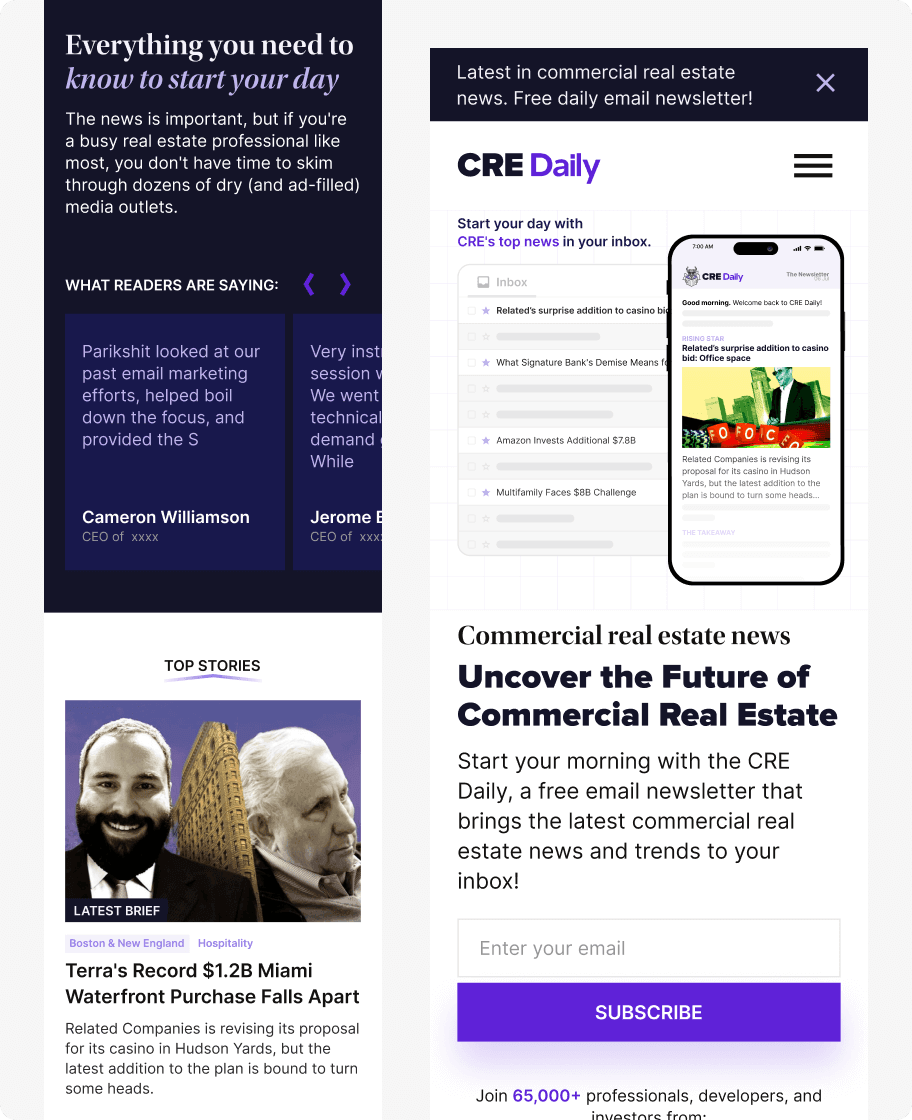 CRE Daily is a leading voice in commercial real-estate news and a necessary resource for anyone in that industry. With over 65,000 readers, including investors, developers, brokers, and business leaders, it has thrived by staying true to message and providing value for its readers.